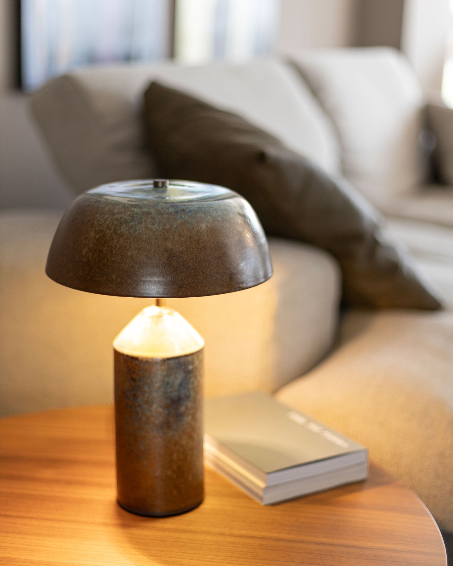 La collezione di lampade da tavolo si distingue per due finiture uniche: la finitura materica graffiata, che esalta le caratteristiche e le potenzialità dell’impasto in gres, e la finitura smaltata, caratterizzata da colorazioni ad effetto che generano sfumature sempre uniche.