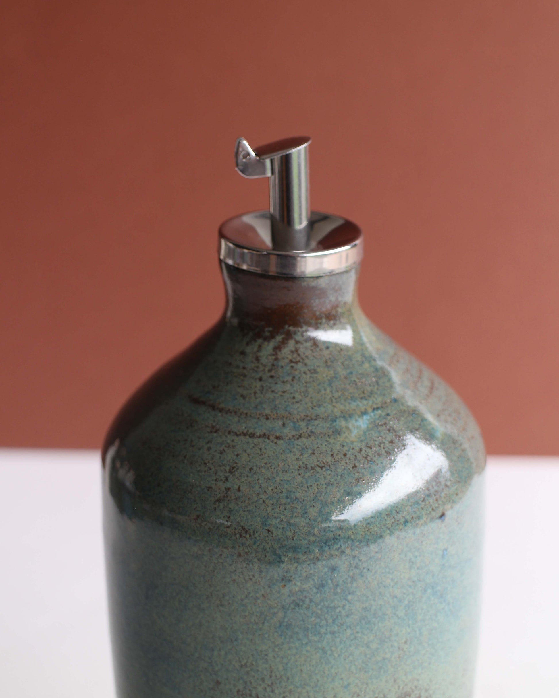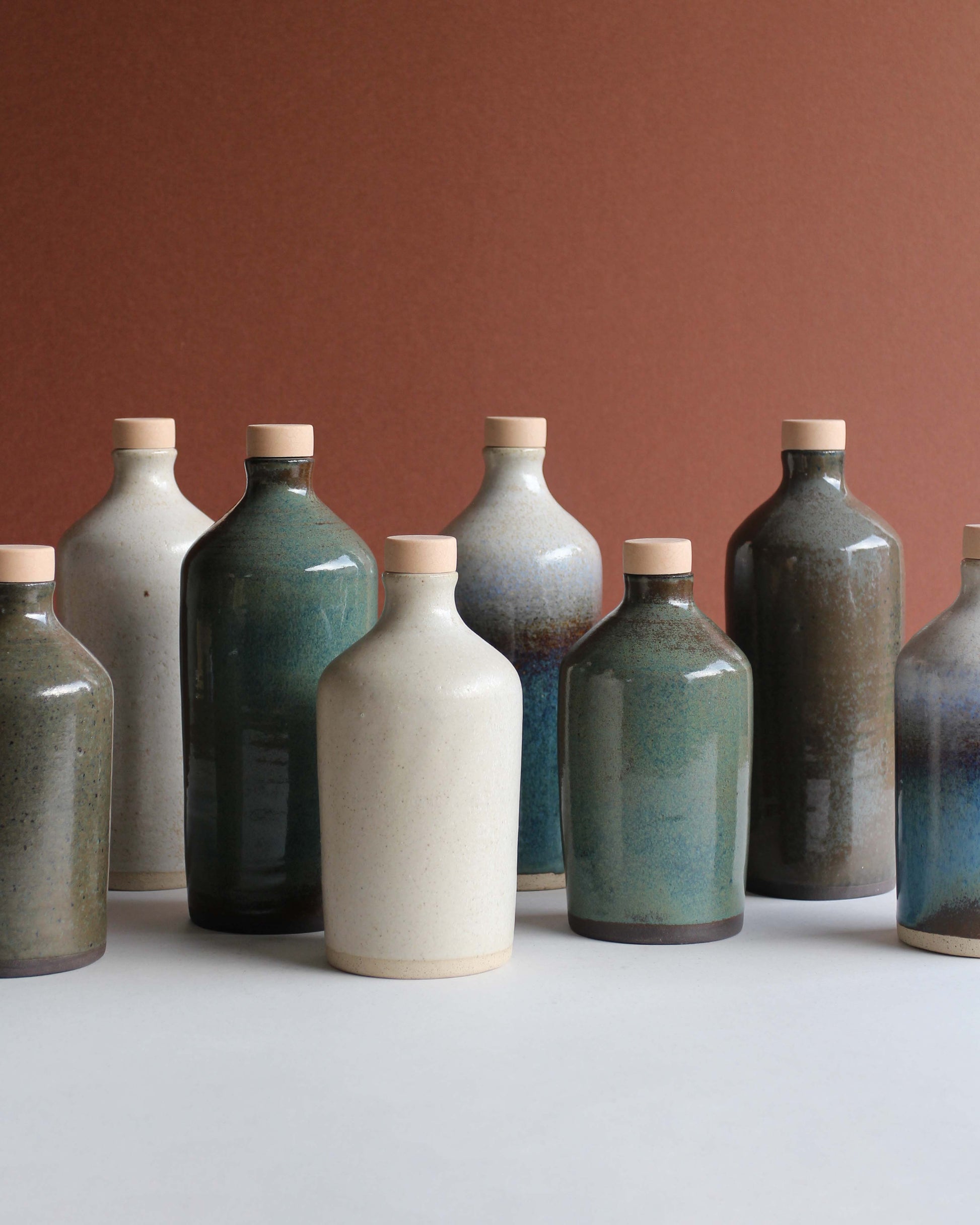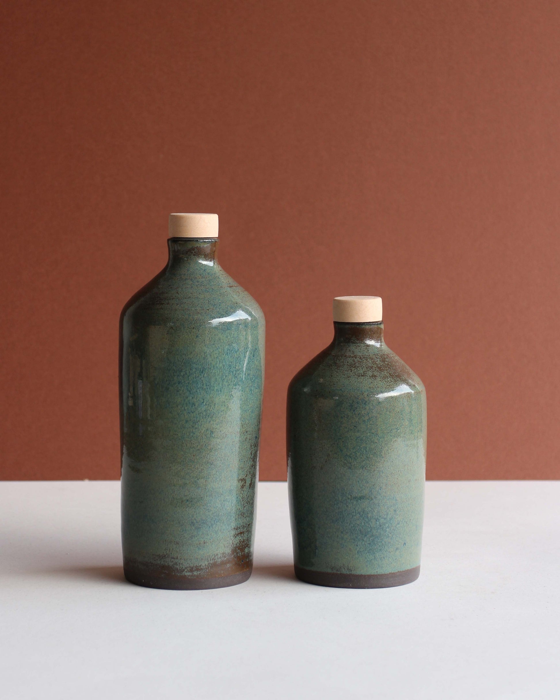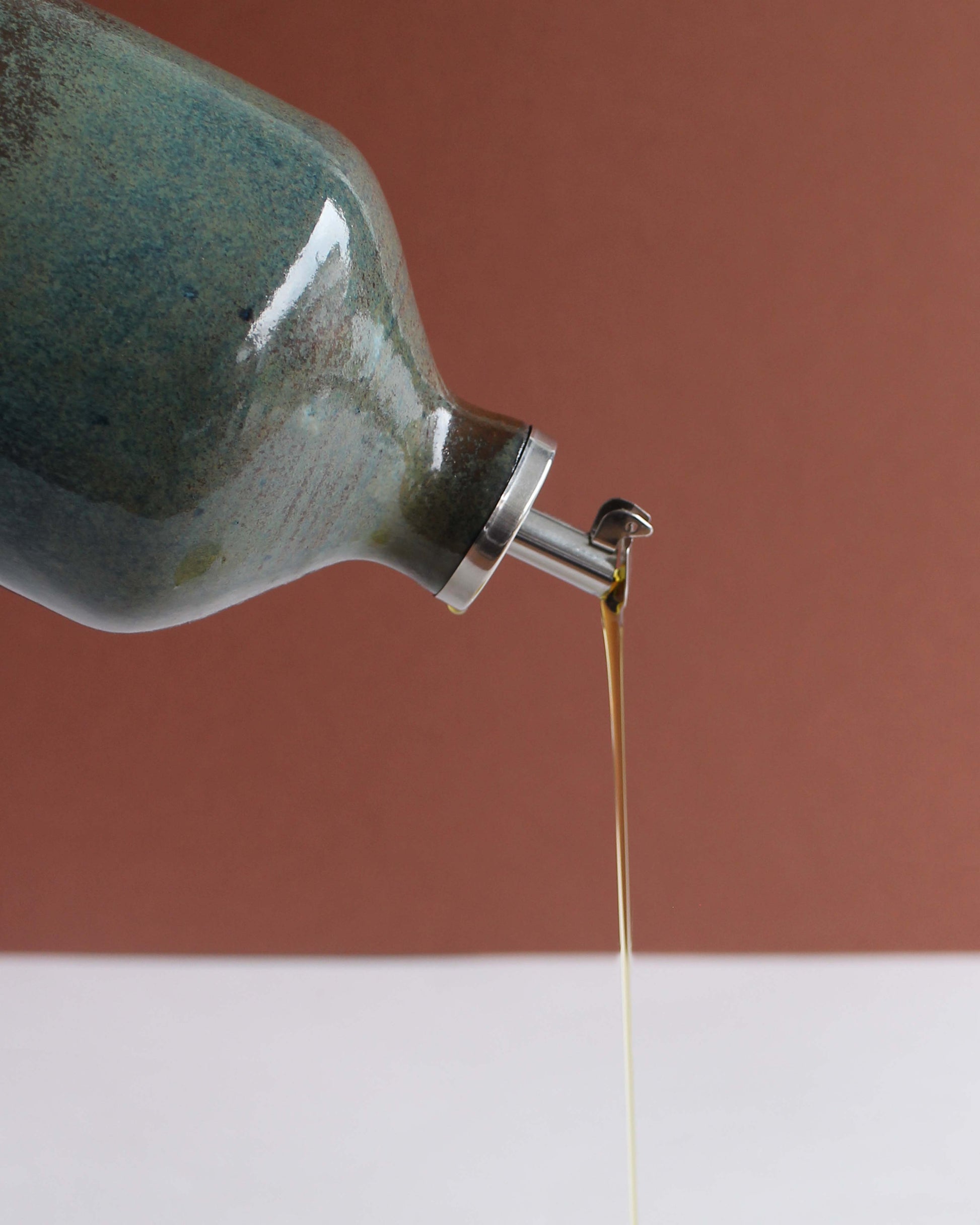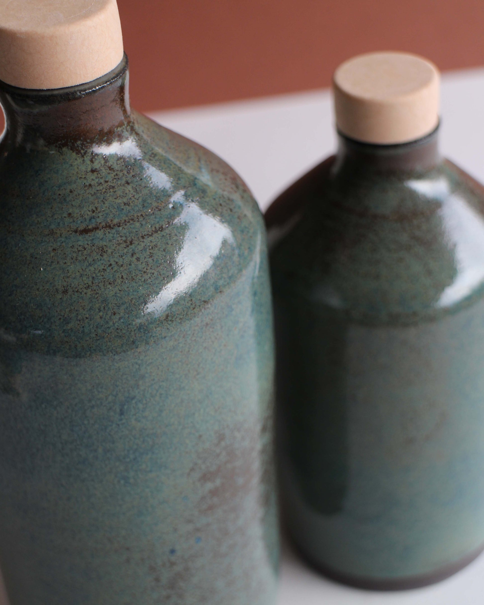 Bottiglia in gres, tornita a mano, perfetta per olio, aceto, salsa di soia, acqua o vino.